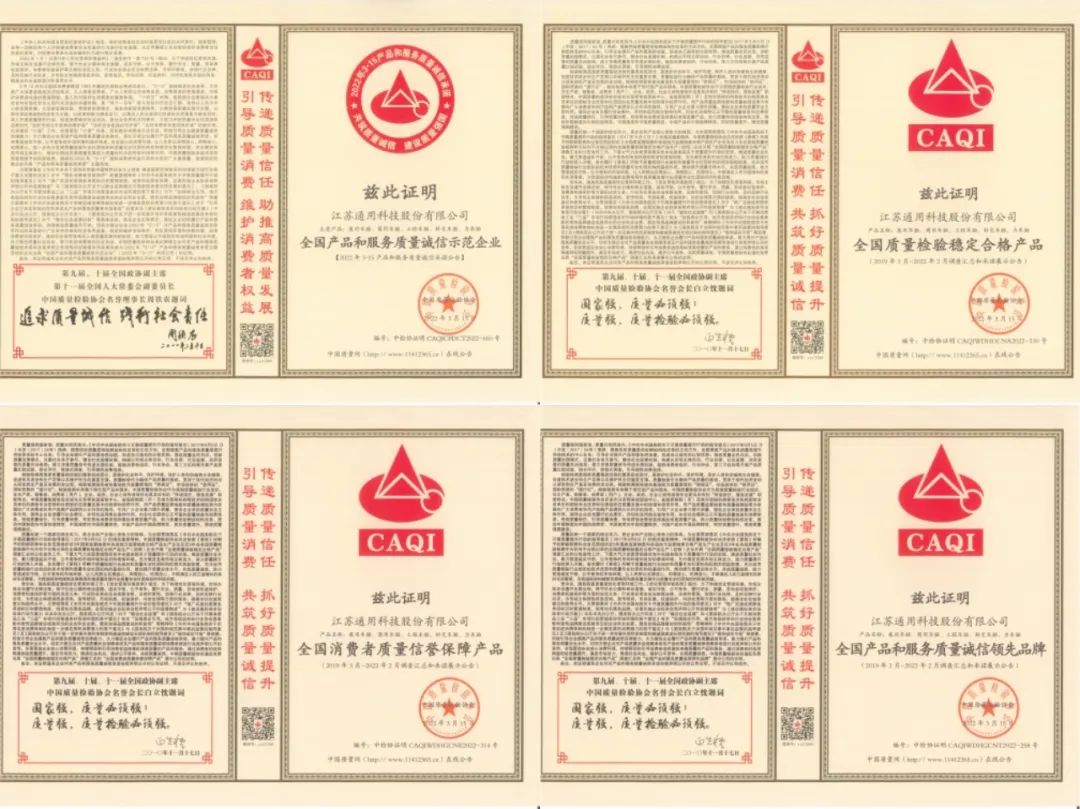 3月15日,通用股份被中國質(zhì)量檢驗協(xié)會授予2022年全國產(chǎn)品和服務(wù)質(zhì)量誠信示范企業(yè)、全國消費者質(zhì)量信譽保障產(chǎn)品、全國質(zhì)量檢驗穩(wěn)定合格