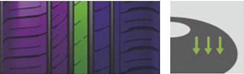 外側寬大的胎肩花紋設計對高速轉向與過彎提供足夠的接地面積。